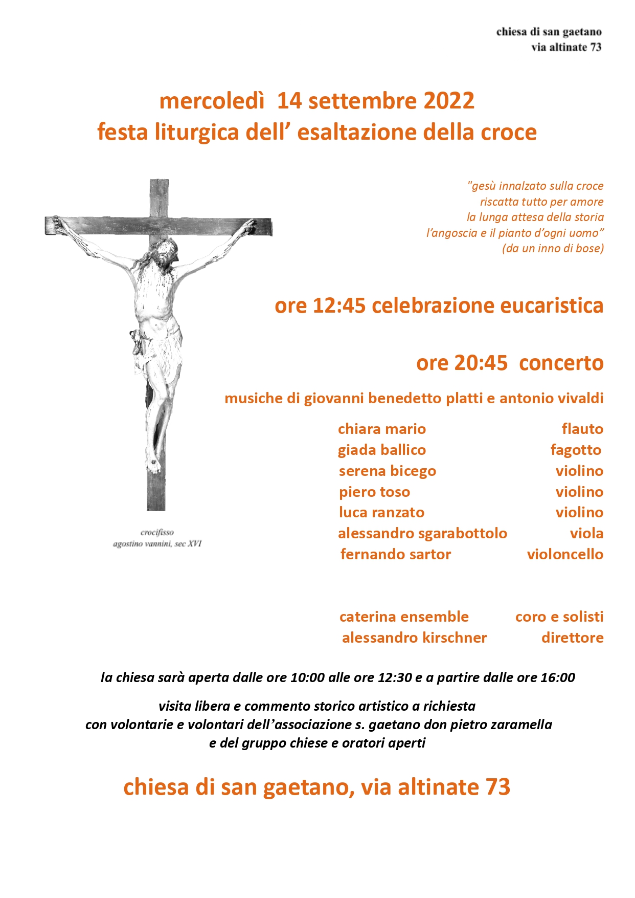 Mercoeldì 14 settembre si terrà la festa liturgica dell’esaltazione della croce.